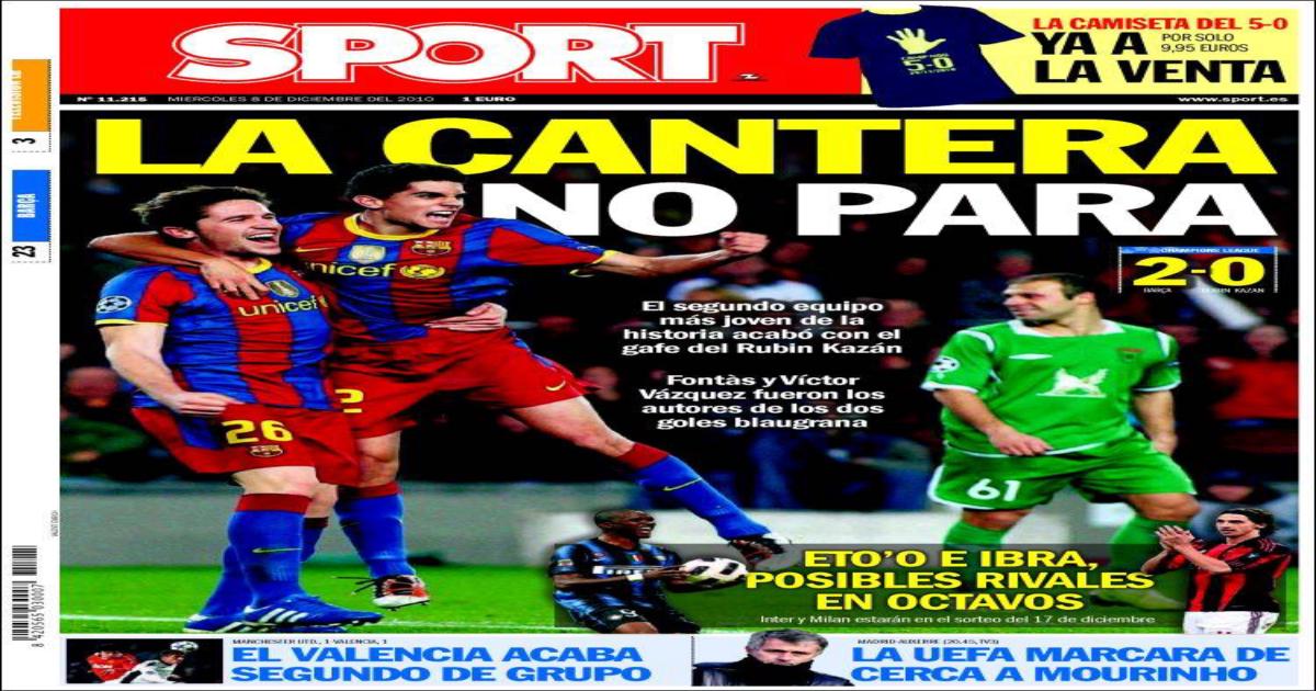 Молодёжь «Барселоны» обыгрывает «Рубин», «Валенсия» берёт очко на «Олд Траффорд», а два кантеранос «Реала» готовятся к дебюту в Лиге Чемпионов. Также читайте в сегодняшнем обзоре испанской прессы: «Реал» покупает Этоо и продаёт Пепе, Ракитич думает о «Севилье», а «Атлетико» вступает в альянс с «Манчестер Сити».