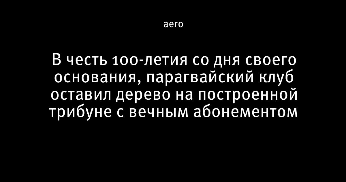 7 августа 2017, 18:08 В честь 100-летия со дня своего основания, парагвайский клуб оставил дерево на построенной трибуне с вечным абонементом Автор aero Этот пост опубликован в блоге на Трибуне Sports.ru. Присоединяйтесь к крупнейшему сообществу спортивных болельщиков! Другие посты блога Вы это видели?
