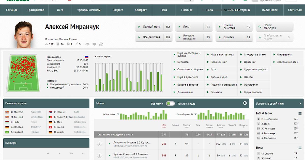 Второй шаг — привязать все значимые события на поле к видео. Сначала у нас появилась программа, года через три — сайт. Сегодня у нас полноценный портал, на котором по каждому игроку можно мгновенно получить всю статистику и нарезку фрагментов матчей с его участием.