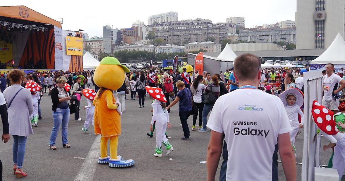 В 9-15 не сговариваясь почти все участники подорвались и разделились на две очереди: в туалет и гардероб. Отстоял обе. После этого все пошли приветствовать участников марафона, стартовавших около получаса назад. 9-45. Многие разминаются. Это делаю и я. Многие бегут почти километр в сторону Океанариума – я только потрусил метров 200.