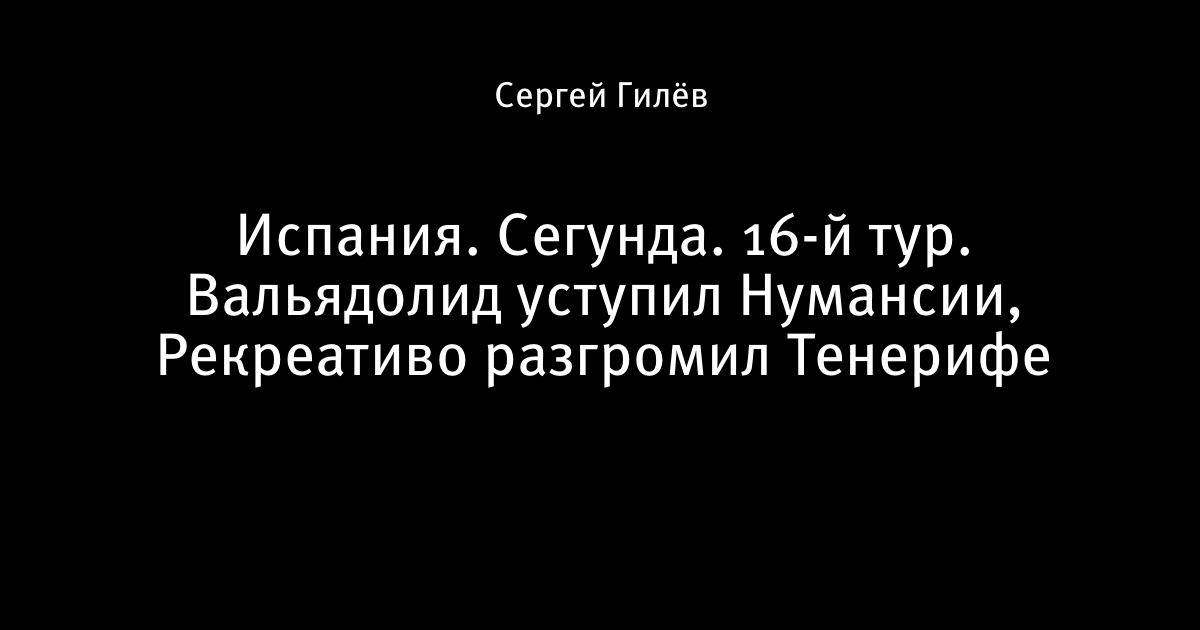 Испания. Сегунда. 16-й тур. Вальядолид уступил Нумансии, Рекреативо разгромил Тенерифе