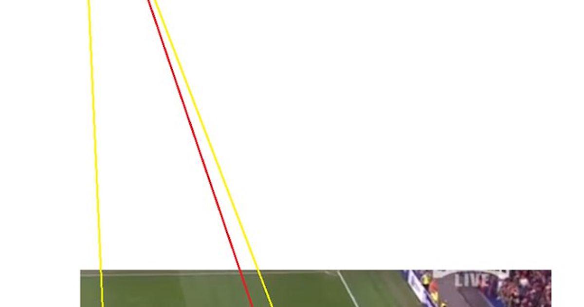 Или можно взать линию газона и вратарскую и найти перспективную прямую.