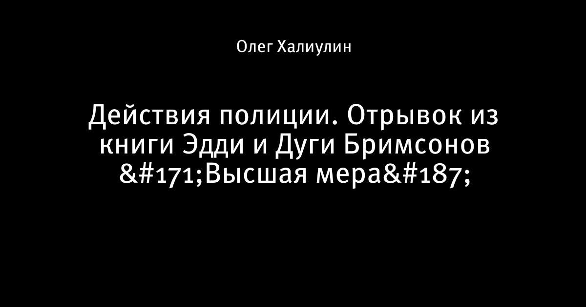 Действия полиции. Отрывок из книги Эдди и Дуги Бримсонов «Высшая мера»