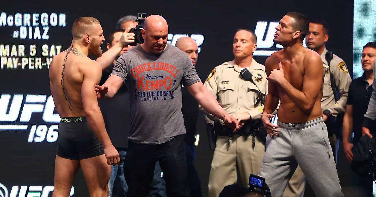 В расчет, конечно же, берется первый бой Конора Макгрегора и Нэйта Диаза. В обоих случаях, большая звезда встречается с сильным, но непопулярным парнем.