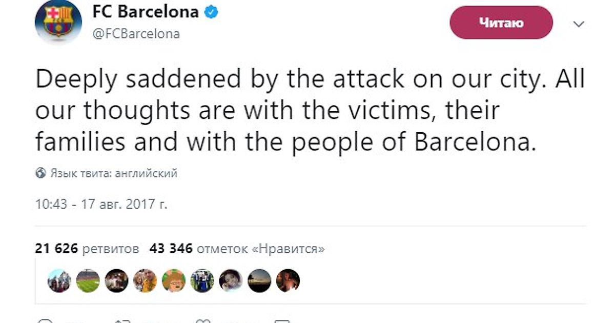 «Глубоко опечалены нападением на наш город. Все наши мысли сейчас о жертвах теракта, их семьях и жителях Барселоны»