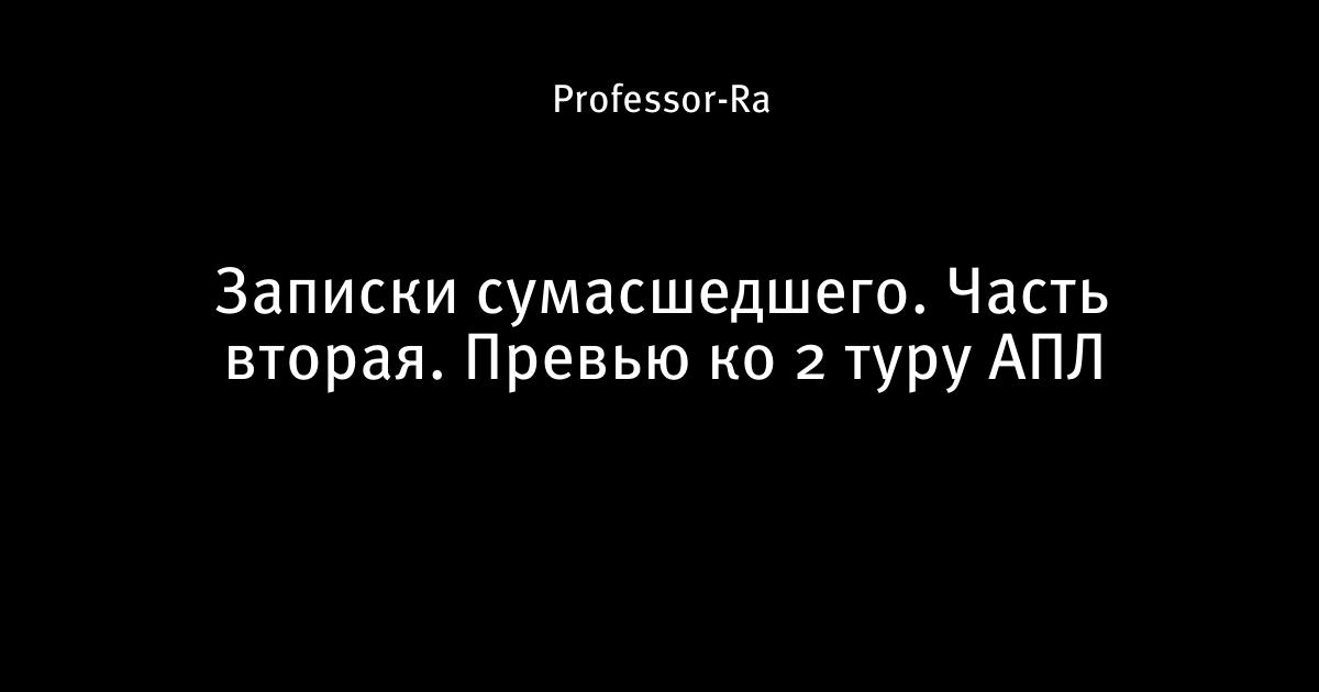 Записки сумасшедшего. Часть вторая. Превью ко 2 туру АПЛ