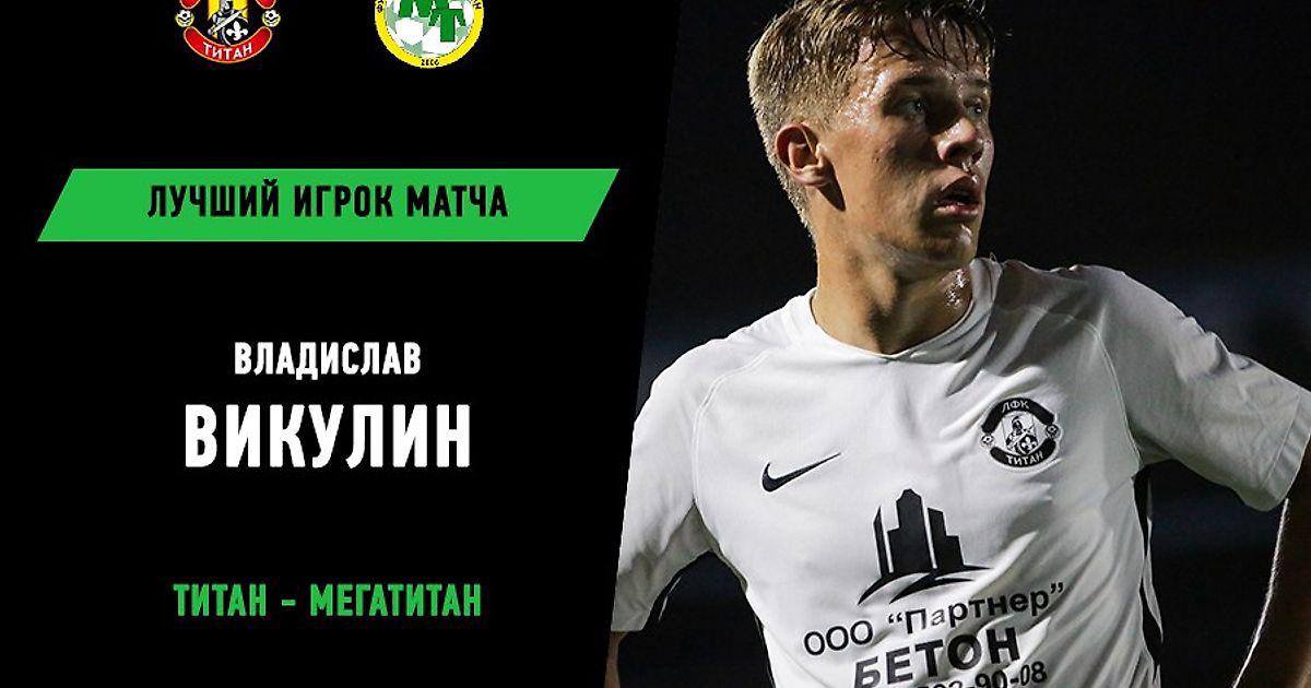 Болельщики и пресс-служба ЛФК «Титан» признали нападающего Владислава Викулина лучшим игроком команды в матче 1-го тура Западной Премьер-Лиги против команды «Мегатитан»! Напомним, что эта встреча завершилась победой «чёрно-зелёных» со счётом 4:2.