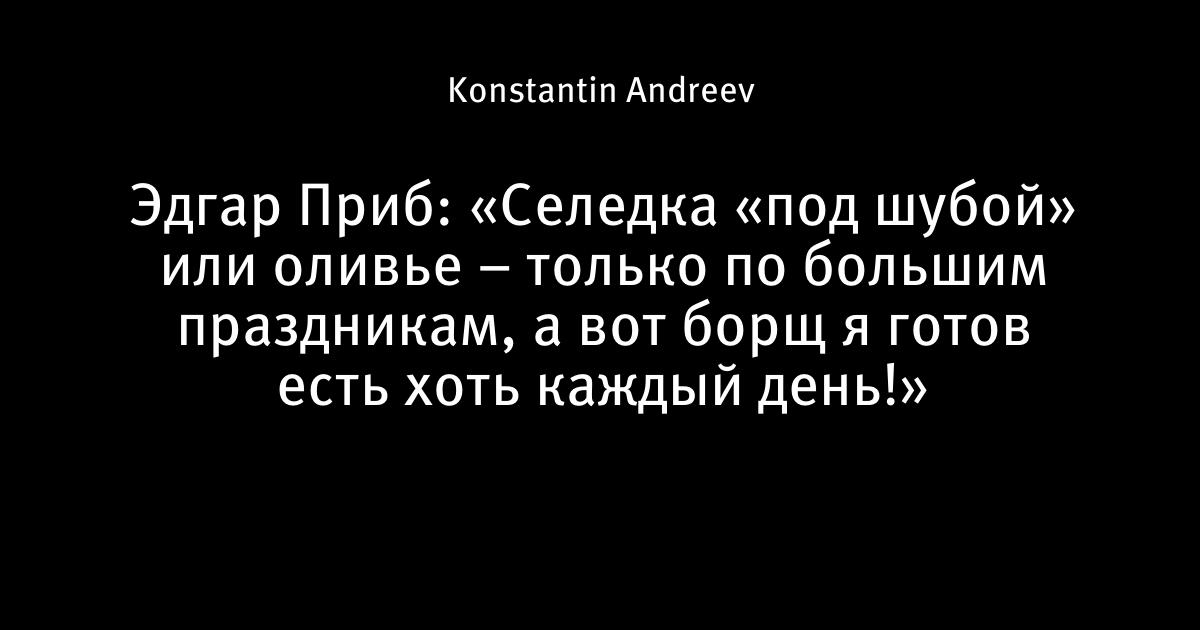 Эдгар Приб: «Селедка «под шубой» или оливье – только по большим праздникам, а вот борщ я готов есть хоть каждый день!»