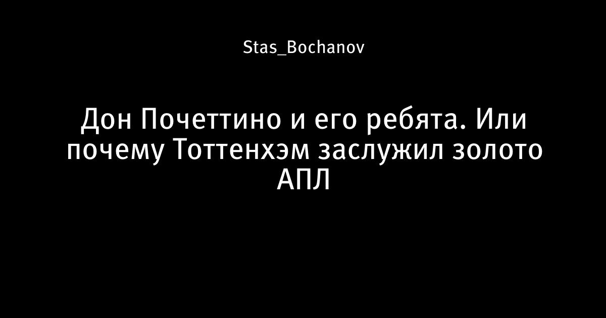 Всем привет, сегодня я хочу поговорить о крутой команде, которая давно заслужила выиграть АПЛ. Нет, это не Арсенал или Ливерпуль (они тоже круты, но сегодня речь не о них). Это Тоттенхэм.