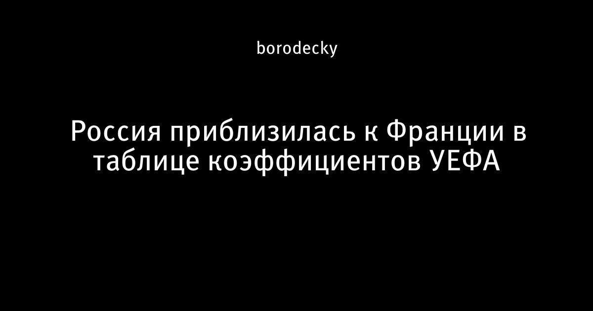 По итогам матчей 4-го квалификационного раунда Лиги Чемпионов Россия приблизилась к Франции в таблице коэффициентов УЕФА на расстояние 2,933 балла.