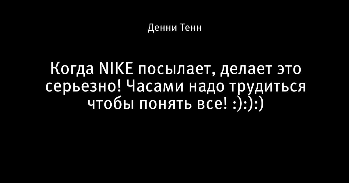 23 августа 2017, 22:19 Когда NIKE посылает, делает это серьезно! Часами надо трудиться чтобы понять все! :):):) Фото > Автор Денни Тенн Этот пост опубликован в блоге на Трибуне Sports.ru. Присоединяйтесь к крупнейшему сообществу спортивных болельщиков! Другие посты блога Nasha Masha US Open Мария Шарапова WTA
