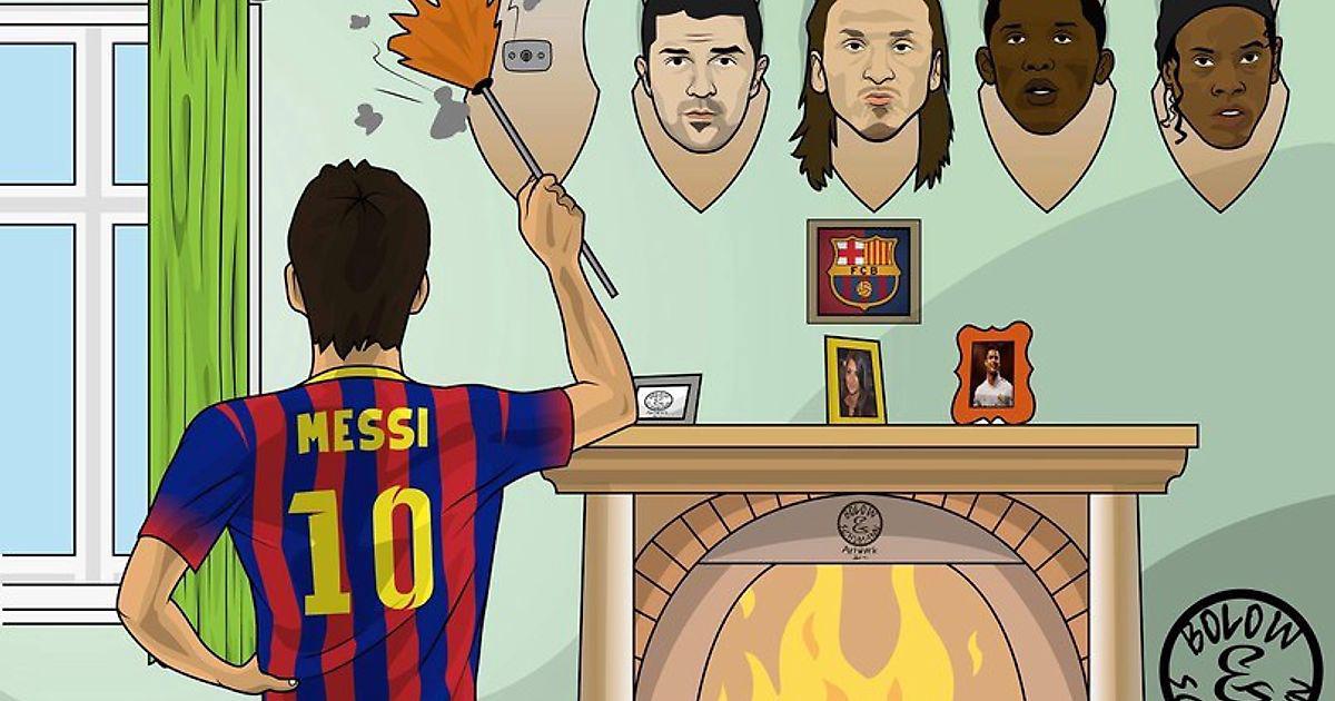 очень глупая и неуместная карикатура! все эти игроки уходили по разным причинам, и при этом красиво,достойна(кроме неймара,конечно)