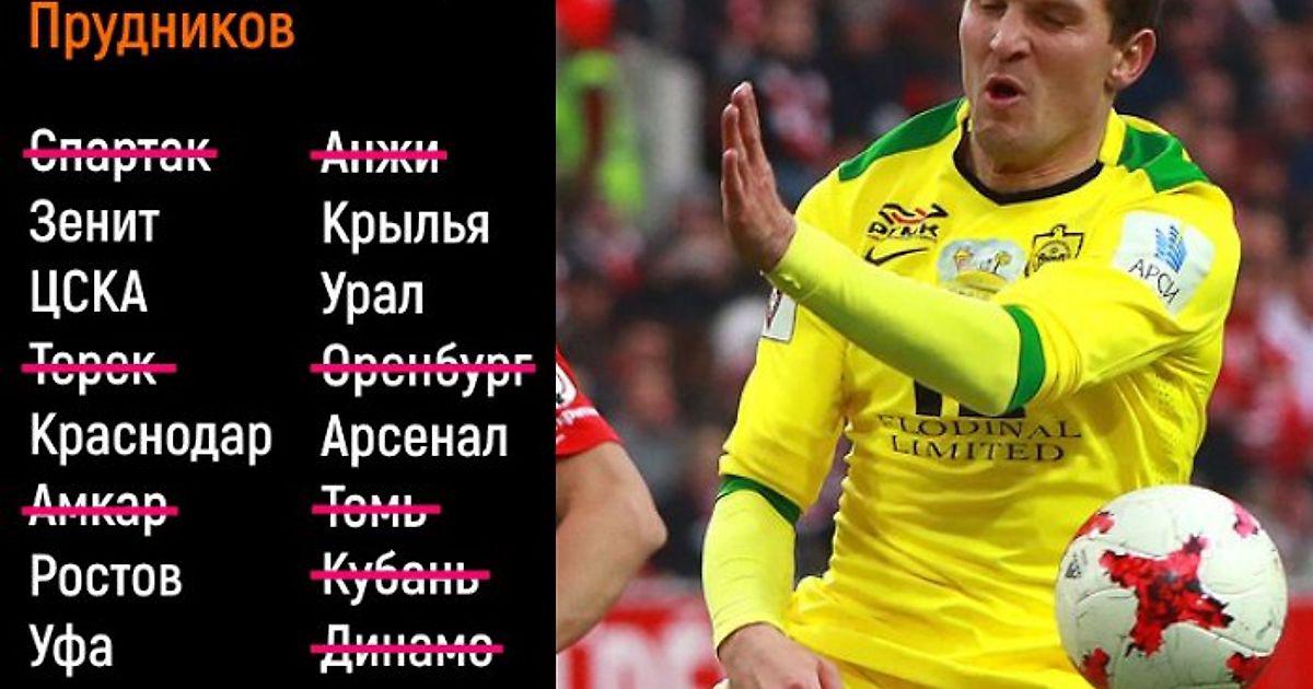 За какие клубы РФПЛ еще не играл Прудников