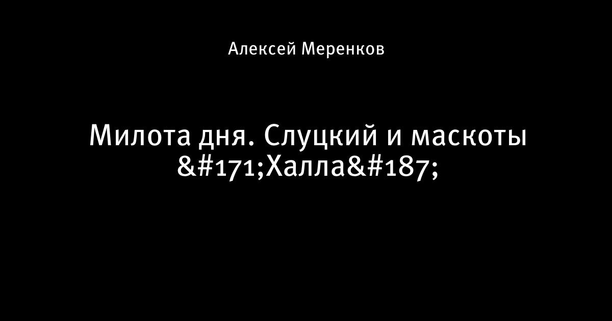 26 августа 2017, 00:35 Милота дня. Слуцкий и маскоты «Халла» Автор Алексей Меренков Этот пост опубликован в блоге на Трибуне Sports.ru. Присоединяйтесь к крупнейшему сообществу спортивных болельщиков! Другие посты блога Гифка Леонид Слуцкий Халл чемпионшип