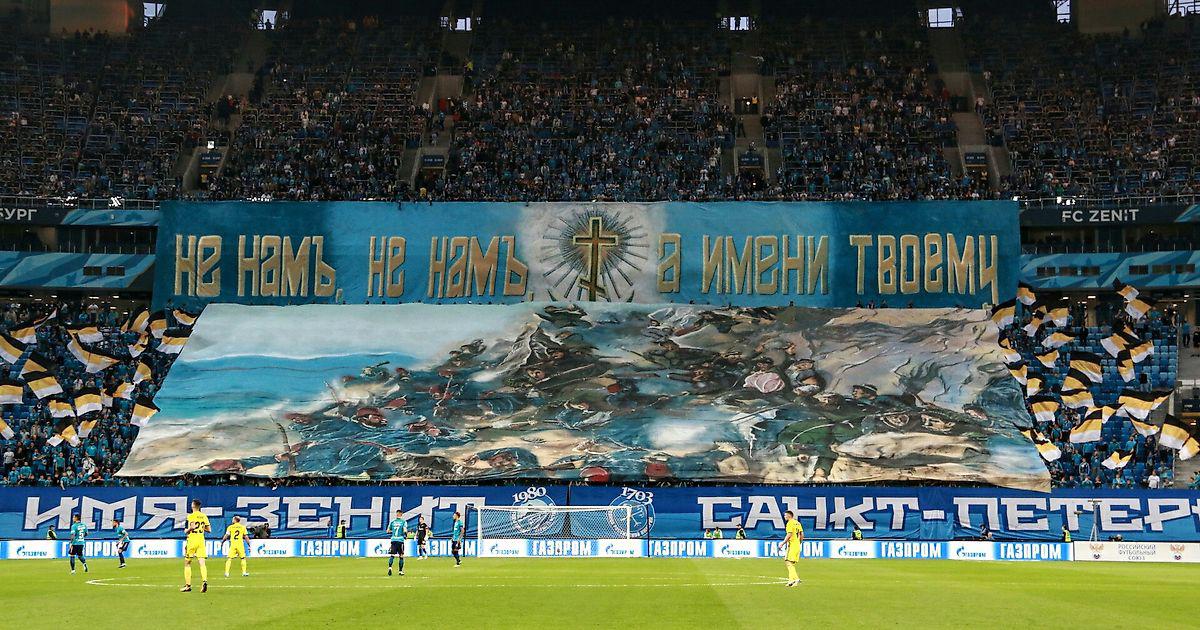 Перфоманс фанатов "Зенита", посвященный годовщине Обороны Шипки (август 1877 года) - одного из ключевых эпизодов Русско-турецкой войны 1877-1878 годов.