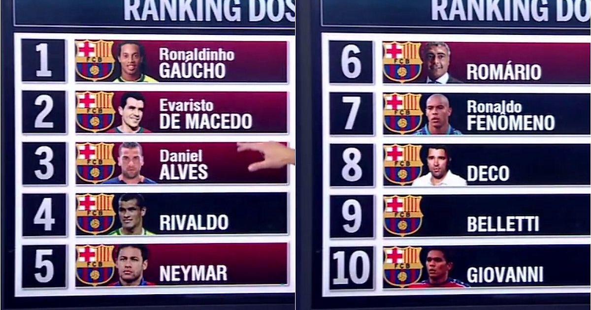 27 августа 2017, 21:34 Величайшие бразильцы в истории «Барселоны» По версии ESPN Автор Сергей Таров Этот пост опубликован в блоге на Трибуне Sports.ru. Присоединяйтесь к крупнейшему сообществу спортивных болельщиков! Другие посты блога Barça Роналдо Роналдиньо Ромарио Ривалдо Джованни Деку Дани Алвес Барселона Неймар