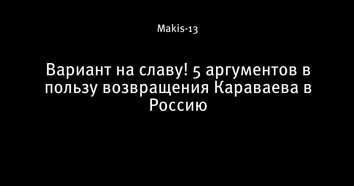 Вариант на славу! 5 аргументов в пользу возвращения Караваева в Россию