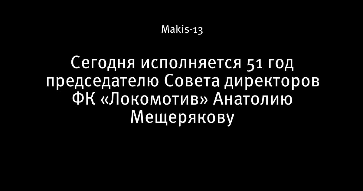 Сегодня исполняется 51 год председателю Совета директоров ФК «Локомотив» Анатолию Мещерякову