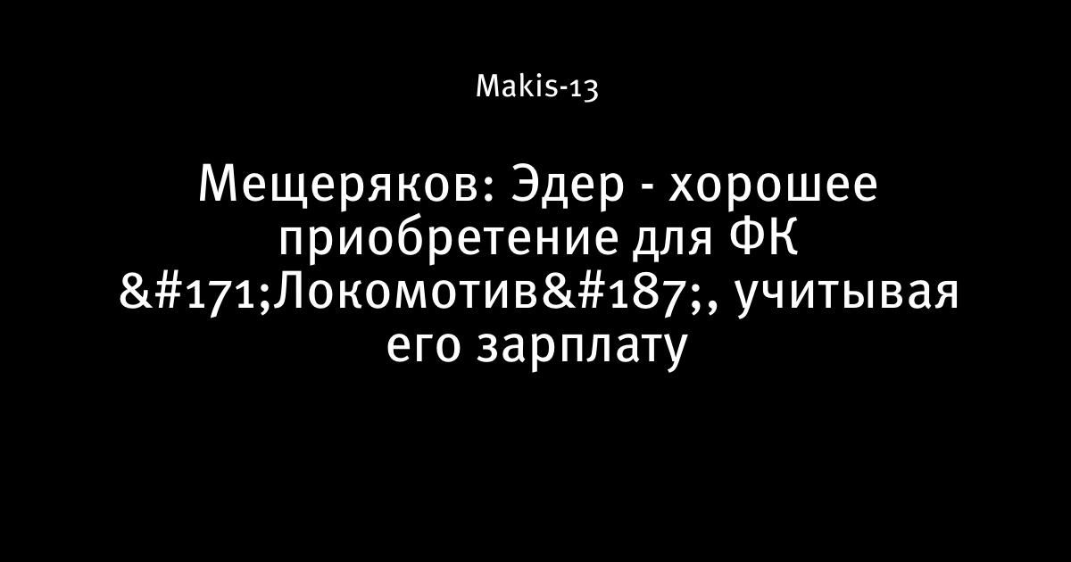 Португальский нападающий Эдер является хорошим приобретением для футбольного клуба "Локомотив", учитывая зарплату, которую он будет получать. Такое мнение высказал председатель совета директоров клуба Анатолий Мещеряков. Ранее в СМИ появилась информация, что 29-летний Эдер будет получать в "Локомотиве" чуть менее €1 млн в год.