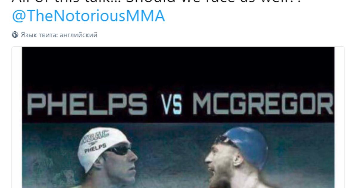29 августа 2017, 21:08 Фелпс предложил МакГрегору дуэль Автор Александр Фадин Майкл Фелпс Конор Макгрегор