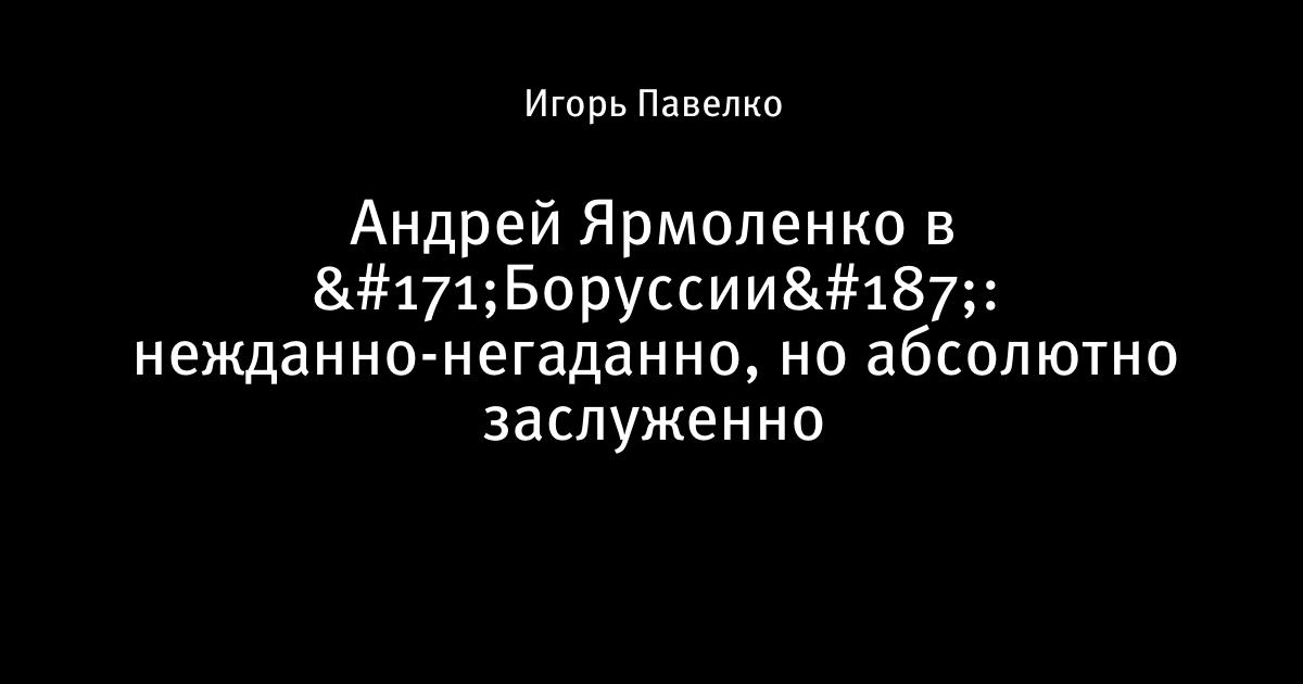 Андрей Ярмоленко в «Боруссии»: нежданно-негаданно, но абсолютно заслуженно