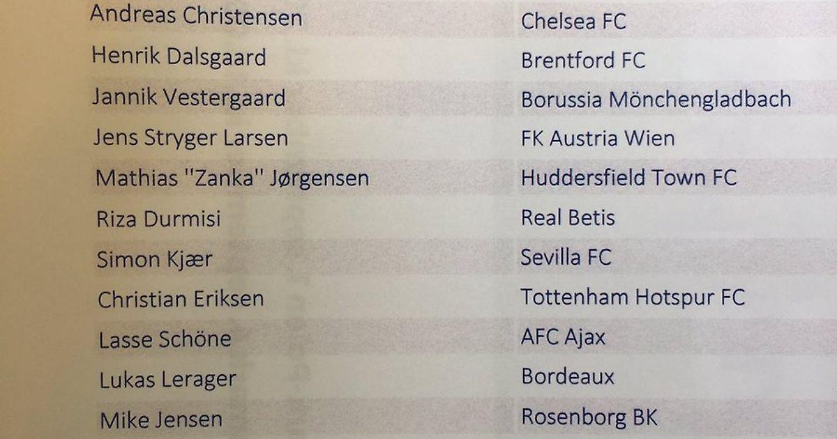 Заявка сборной Дании на ближайшие матчи против Польши и Армении