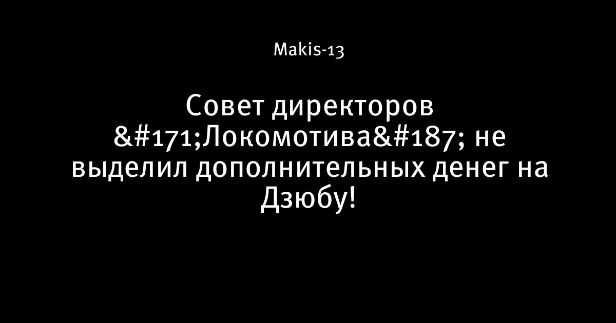 Совет директоров «Локомотива» не выделил дополнительных денег на Дзюбу!