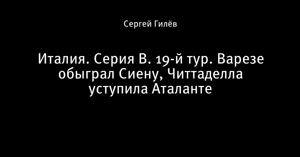 Италия. Серия В. 19-й тур. Варезе обыграл Сиену, Читтаделла уступила Аталанте