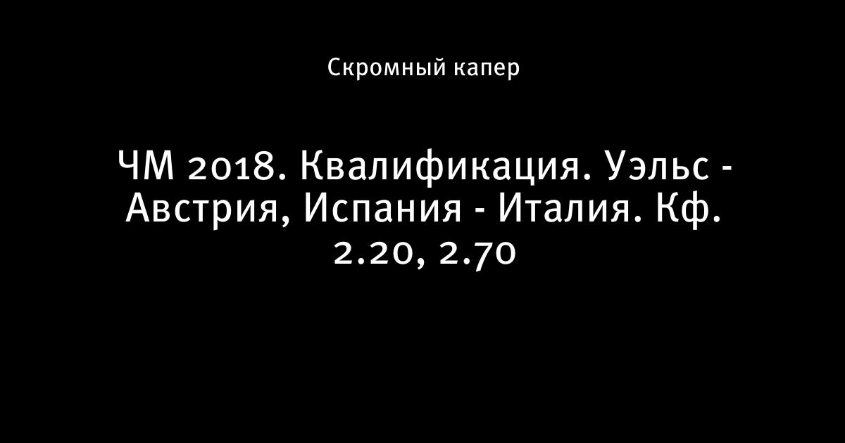 ЧМ 2018. Квалификация. Уэльс - Австрия, Испания - Италия. Кф. 2.20, 2.70