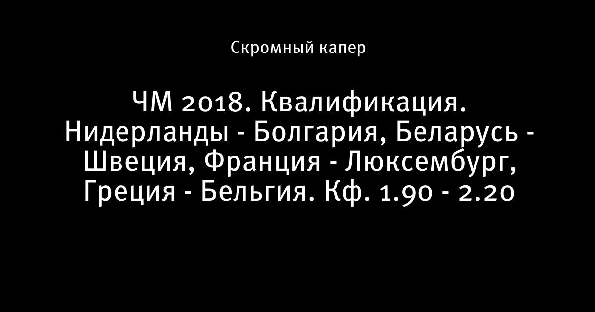 ЧМ 2018. Квалификация. Нидерланды - Болгария, Беларусь - Швеция, Франция - Люксембург, Греция - Бельгия. Кф. 1.90 - 2.20