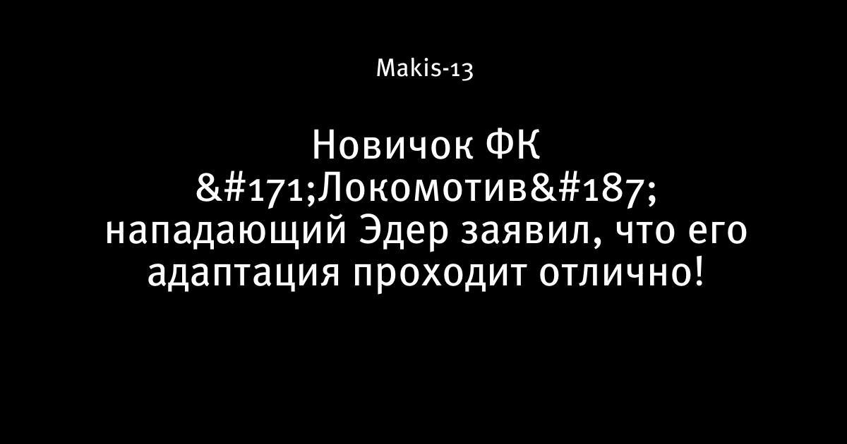Новичок ФК «Локомотив» нападающий Эдер заявил, что его адаптация проходит отлично!