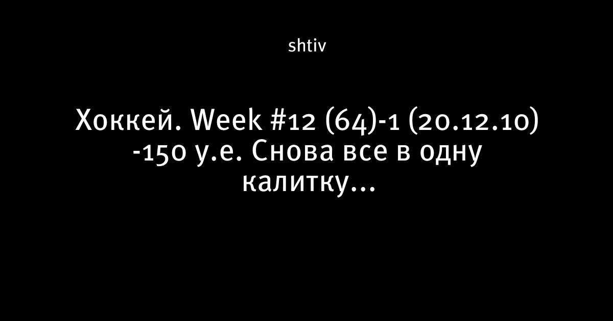 Хоккей. Week #12 (64)-1 (20.12.10) -150 у.е. Снова все в одну калитку...