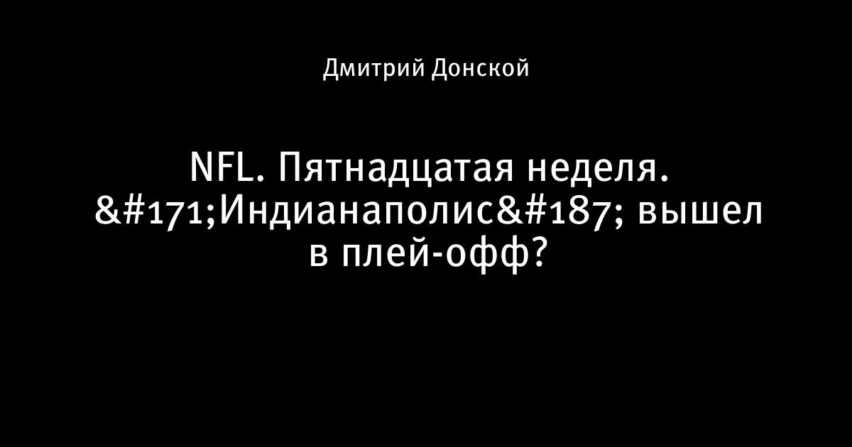 "Индианаполис" все-таки выиграл и вышел на первое место в дивизионе, что позволяет команде контролировать свою судьбу и попадание в плей-офф. Напомню, что осталось всего два матча и если "Кольтс" выиграют оба, то попадут в плей-офф с первого места. Пока же у соперников одинаковое количество побед и поражений (8-6).
