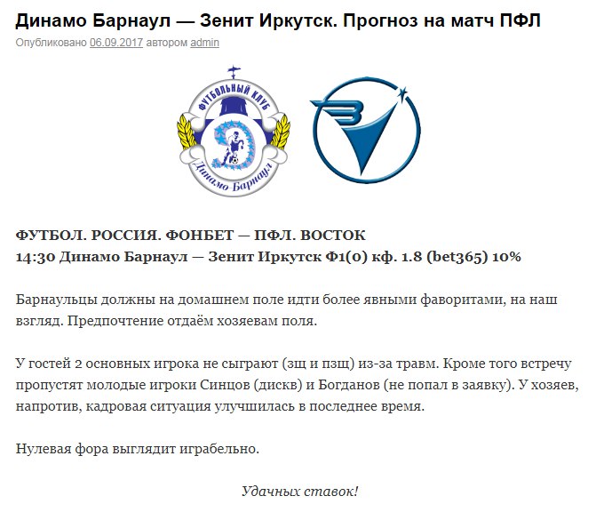 Динамо Барнаул — Зенит Иркутск. Прогноз на матч ПФЛ