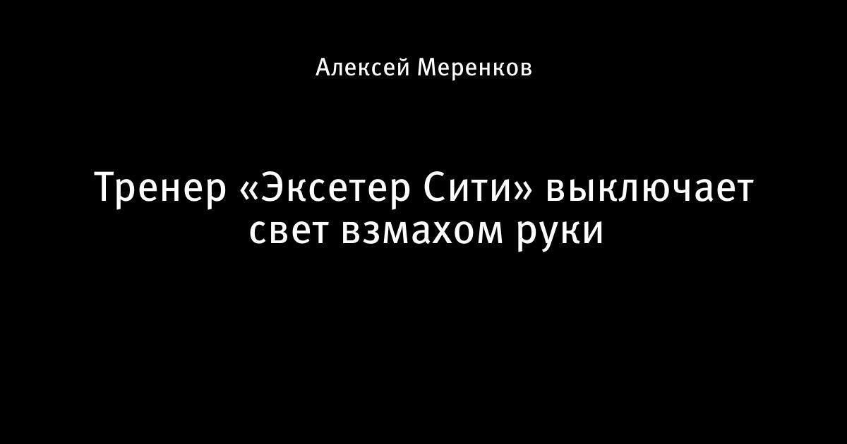 6 сентября 2017, 22:07 Тренер «Эксетер Сити» выключает свет взмахом руки Автор Алексей Меренков Этот пост опубликован в блоге на Трибуне Sports.ru. Присоединяйтесь к крупнейшему сообществу спортивных болельщиков! Другие посты блога Гифка Д4 Англия Эксетер