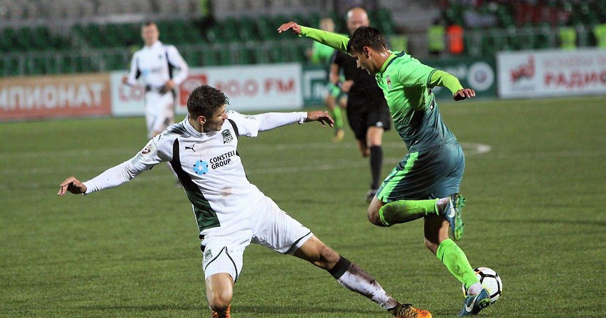 Гости не сбавляли оборотов, и казалось, что гол в первом тайме это всего лишь вопрос времени. Очень активны были в составе быков: Газинский, Перейра, Классон и Смолов. На двадцать четвёртой минуте после затяжной атаки партнёры вывели на ударную позицию Классона, который пробил выше ворот. На тридцать девятой минуте Смолов пробил в руки Беленову. Первый тайм так и закончился, хотя моменты были у обеих команд.