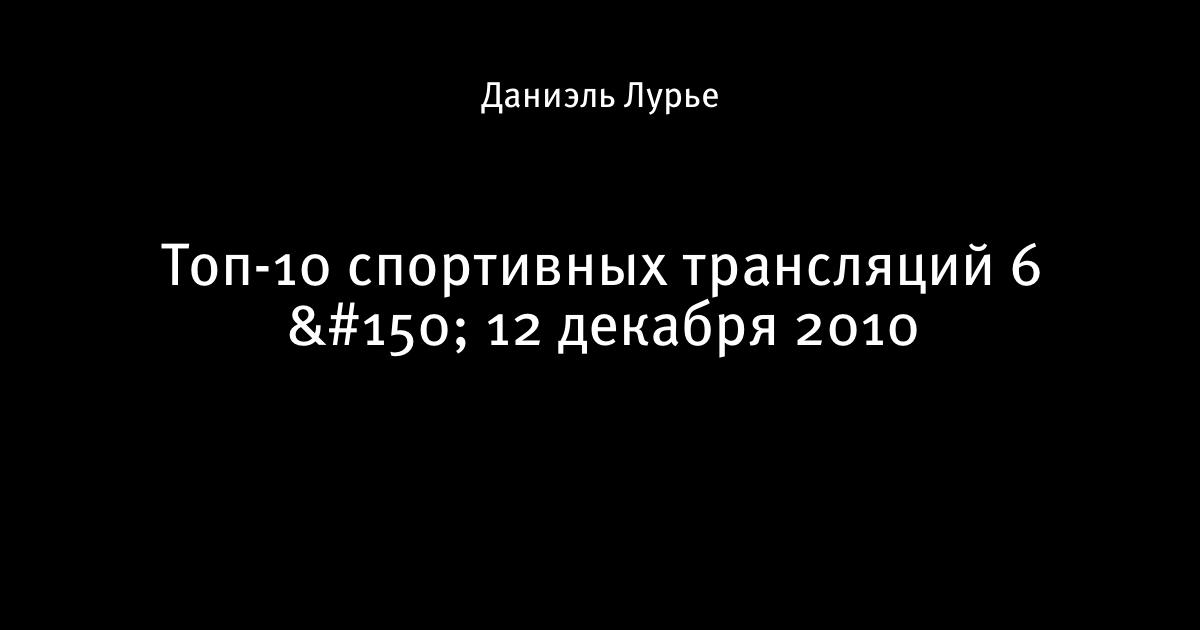 22 декабря 2010, 17:53 Топ-10 спортивных трансляций 6 12 декабря 2010 Автор Даниэль Лурье Этот пост опубликован в блоге на Трибуне Sports.ru. Присоединяйтесь к крупнейшему сообществу спортивных болельщиков! Другие посты блога Лучшие футбольные практики