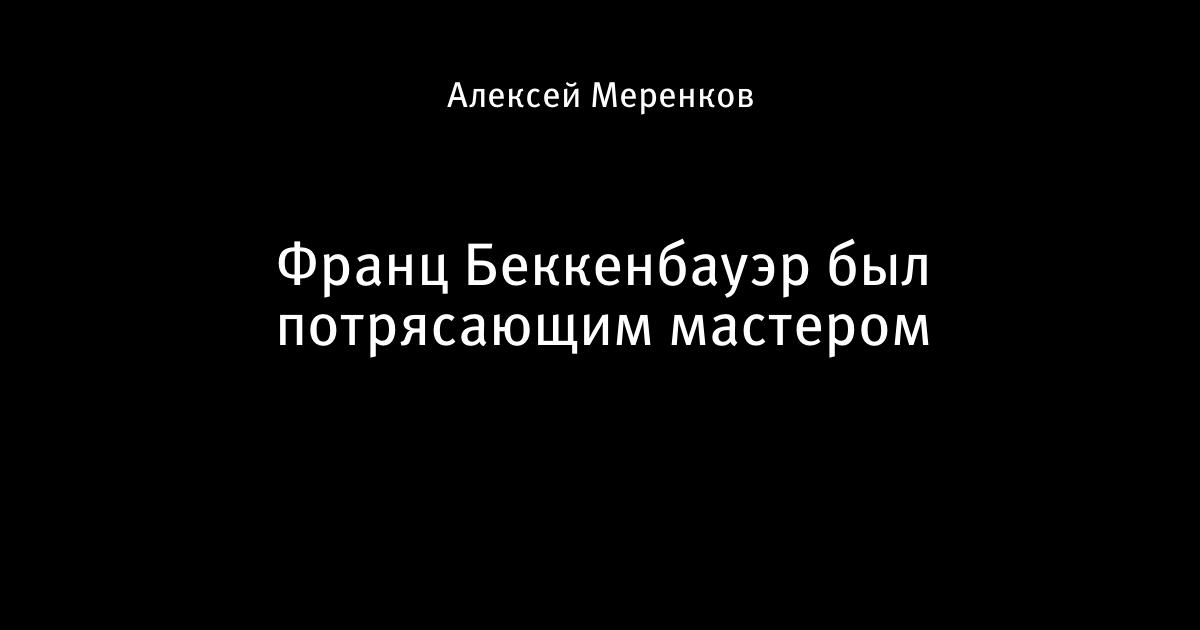 11 сентября 2017, 22:26 Франц Беккенбауэр был потрясающим мастером Автор Алексей Меренков Этот пост опубликован в блоге на Трибуне Sports.ru. Присоединяйтесь к крупнейшему сообществу спортивных болельщиков! Другие посты блога Гифка Франц Беккенбауэр Бавария