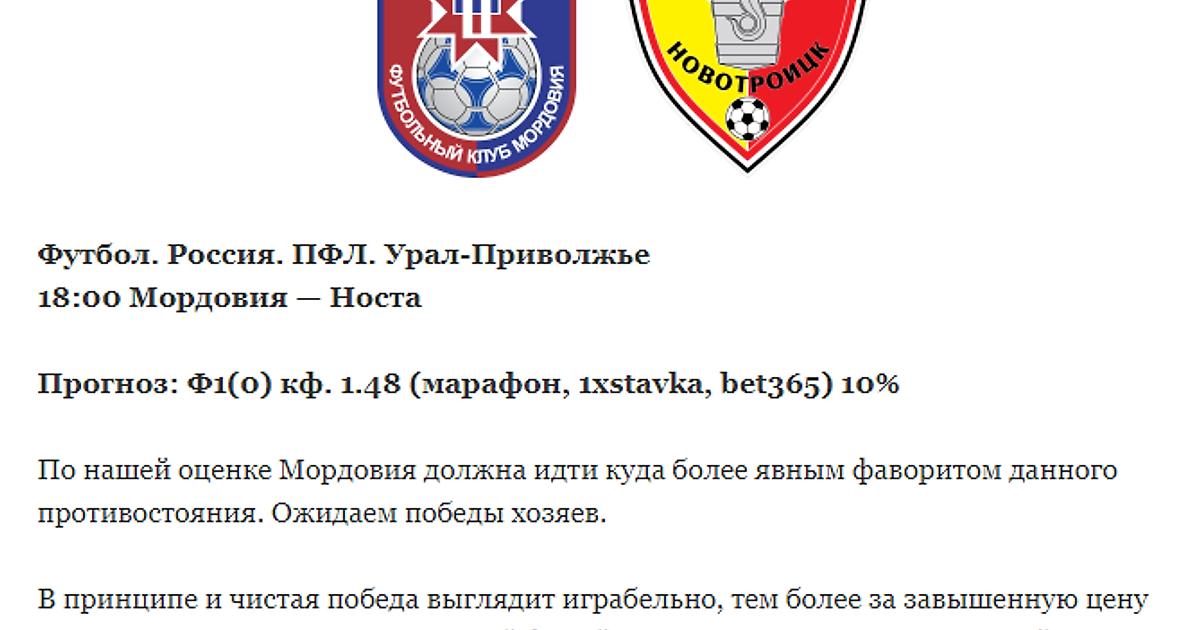 Мордовия — Носта. Прогноз на матч ПФЛ