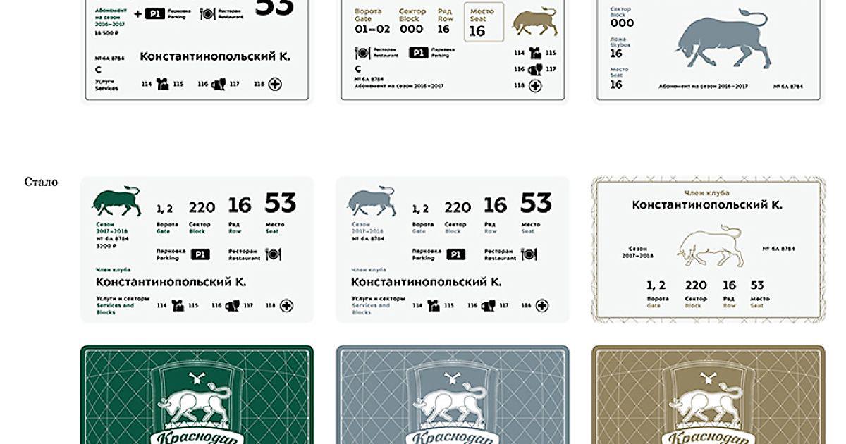 Студия Лебедева оформила для «Краснодара» разовые билеты и абонементы — клубные карты трех категорий.