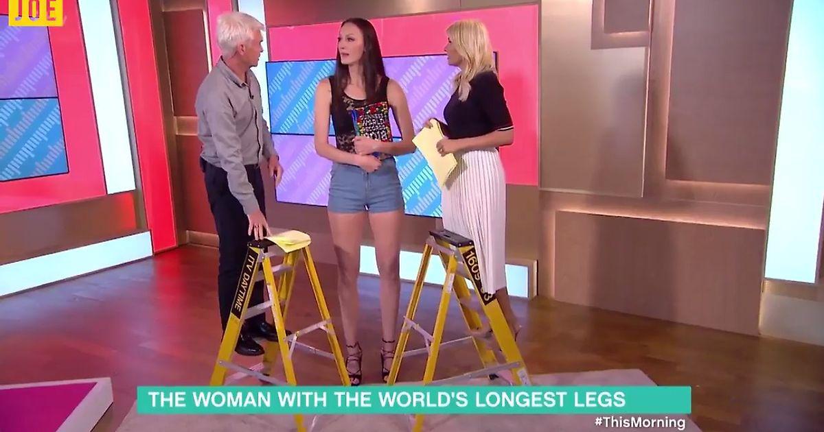 Ведущим понадобилась стремянка, чтобы пообщаться с русской баскетболисткой, у которой самые длинные ноги в мире