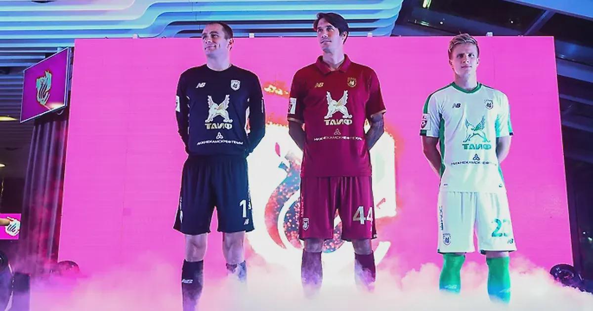 Наконец, на сцене под аплодисменты болельщиков начали появляться игроки в новой форме. Домашний комплект представляли Магомед Оздоев, Цезарь Навас, Олег Кузьмин и Эльмир Набиуллин. Гостевой - Моритц Бауэр, Рагнар Сигурдссон, Дмитрий Губанов и Михаил Яковлев. Троица вратарей обошлась без Сослана Джанаева. Компанию Сергею Рыжикову и Тимуру Акмурзину составил Егор Тушев из молодёжки.