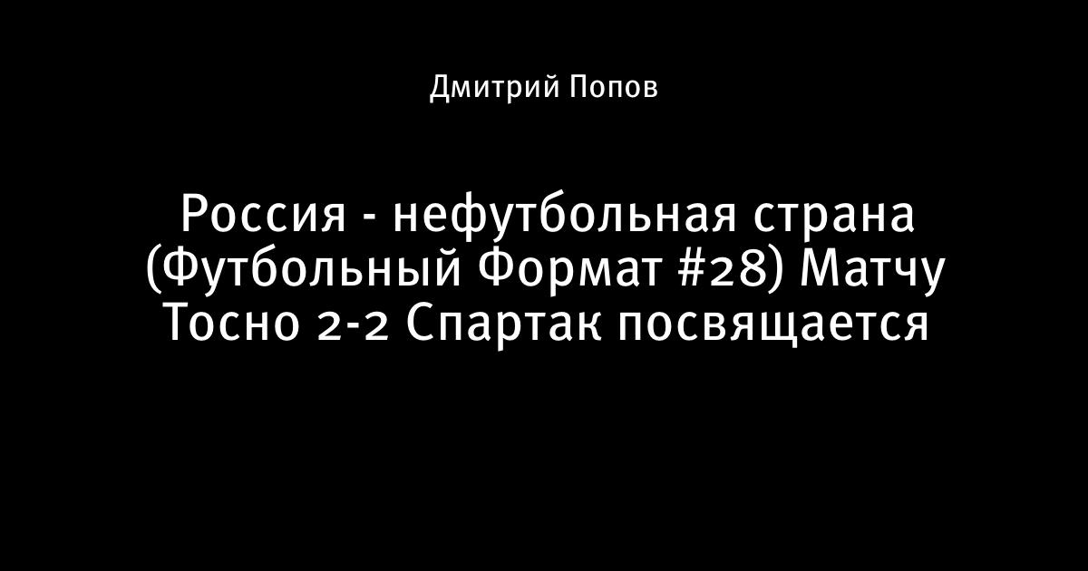 Россия - нефутбольная страна (Футбольный Формат #28) Матчу Тосно 2-2 Спартак посвящается