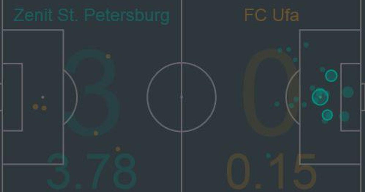 Карта ударов выглядит эталонно для матчей против таких андердогов, все удары(кроме мандража Капленко, в попытке сделать, что угодно лишь бы не обрезать команду на контратаке Уфы) сделаны из отличных позиций в штрафной или в зоне 14.