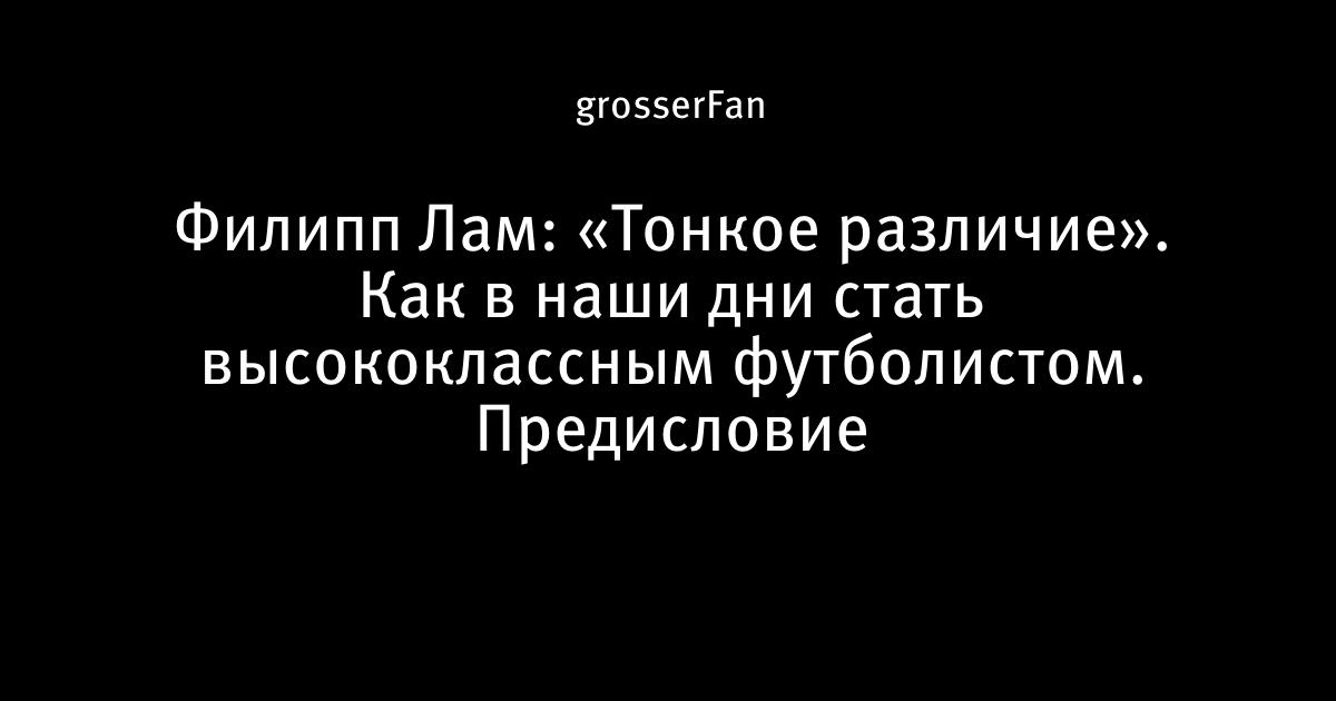Филипп Лам: «Тонкое различие». Как в наши дни стать высококлассным футболистом. Предисловие