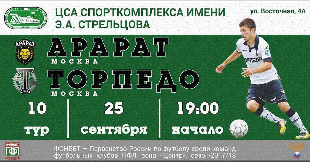 25 сентября на стадионе имени Э.Стрельцова в Москве состоится поединок главных конкурентов за выход в ФНЛ из группы «Центр» - «Торпедо» и «Арарата». Номинальными хозяевами поля будут считаться «араратовцы».