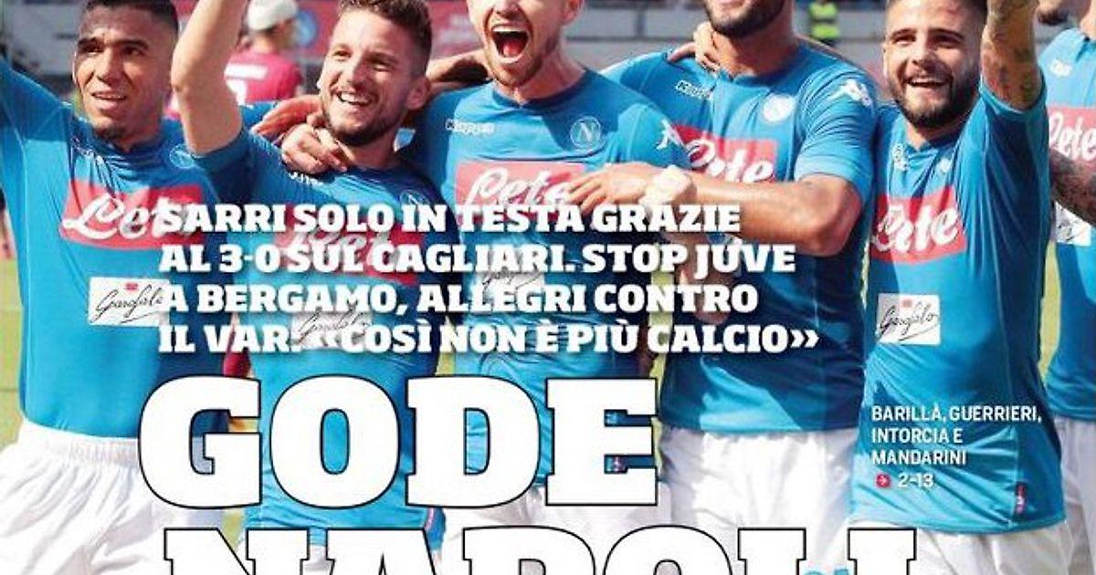 На «Сан Паоло» 3:0 против «Кальяри», в Бергамо от 0:2 к 2:2. Адзурри первые в одиночестве. Какова «Аталанта»! Аллегри остановлен со спорами. Лидер провёл отличную игру, улучшив рекорд и одержав седьмую победу подряд. Гамшик превзошёл Марадону. У чемпиона против Нерадзурри главным героем стали видеоповторы: отменён гол Манджукича, назначен пенальти (который не реализовал Дибала) и возможно не замечен один. Макс: «Так матчи будут продолжаться по четыре часа».