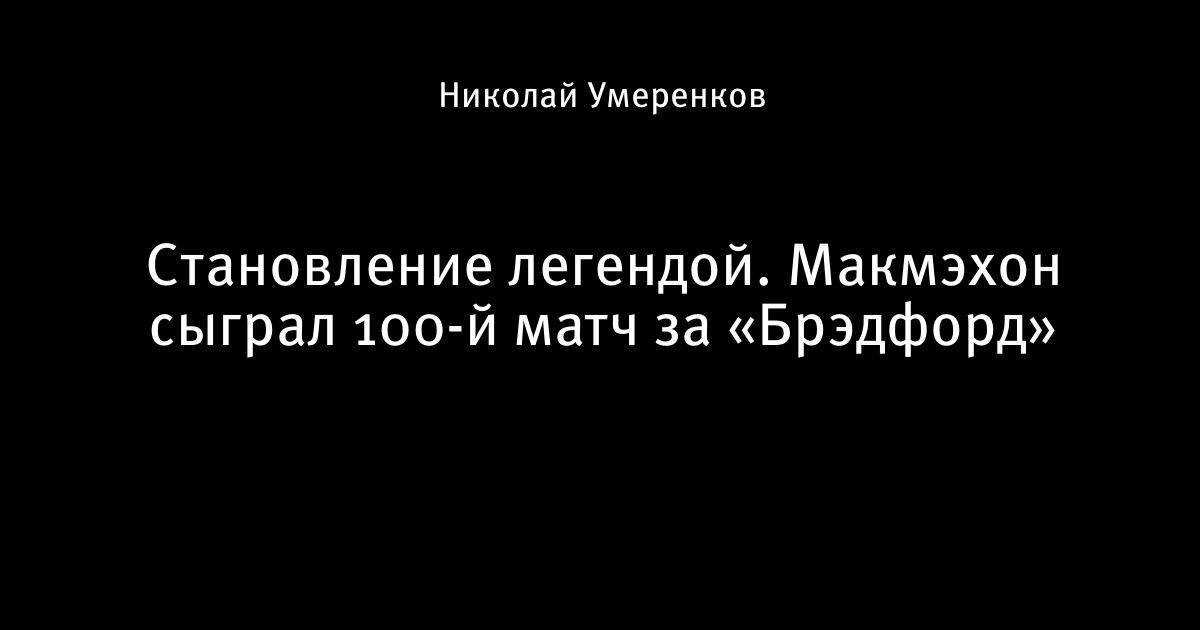 Становление легендой. Макмэхон сыграл 100-й матч за «Брэдфорд»