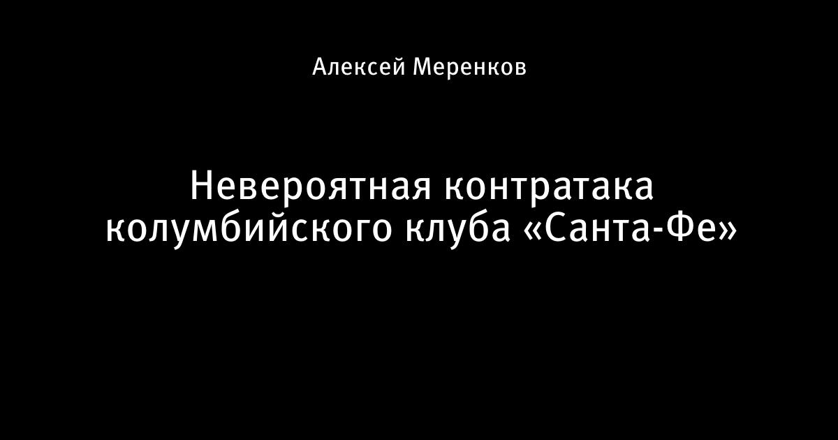 3 октября 2017, 16:55 Невероятная контратака колумбийского клуба «Санта-Фе» 3 касания, 8 секунд и гол Автор Алексей Меренков Этот пост опубликован в блоге на Трибуне Sports.ru. Присоединяйтесь к крупнейшему сообществу спортивных болельщиков! Другие посты блога Гифка Санта-Фе