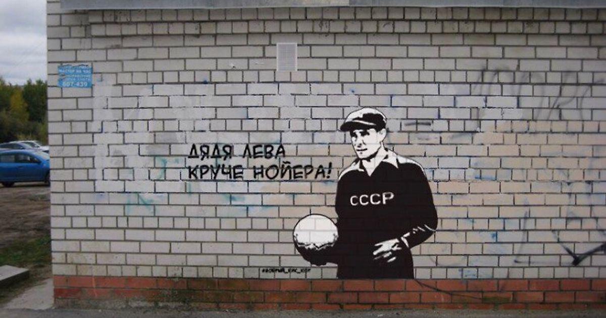 3 октября 2017, 11:36 Граффити в одном из городов России Автор Алексей Меренков Этот пост опубликован в блоге на Трибуне Sports.ru. Присоединяйтесь к крупнейшему сообществу спортивных болельщиков! Другие посты блога Вы это видели? Лев Яшин сборная СССР фото